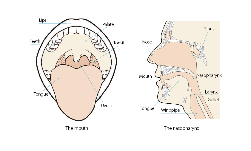 This includes oral cancers, such as cancer of the tongue, gums, cheeks and roof of your mouth (hard palate), as well as cancers of the throat, nose, sinuses, salivary glands, middle ear and larynx.